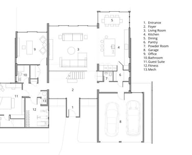 As such, all spaces are relational to each other - the entrance to the main living area, the kitchen to the living, the dining room to the Kitchen. The Rooms to their suites.