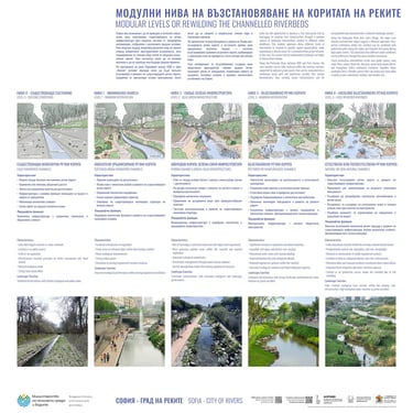 Следните визии илюстрират как реките на София могат да започнат да се възстановяват и трансформират чрез различни нива на намеса от минимални подобрения до по-съществени промени. Голяма част от основата вече съществува: инженерни речни корита, прилежащи открити пространства и градска структура, която може да поддържа непрекъсната синьо-зелена мрежа.