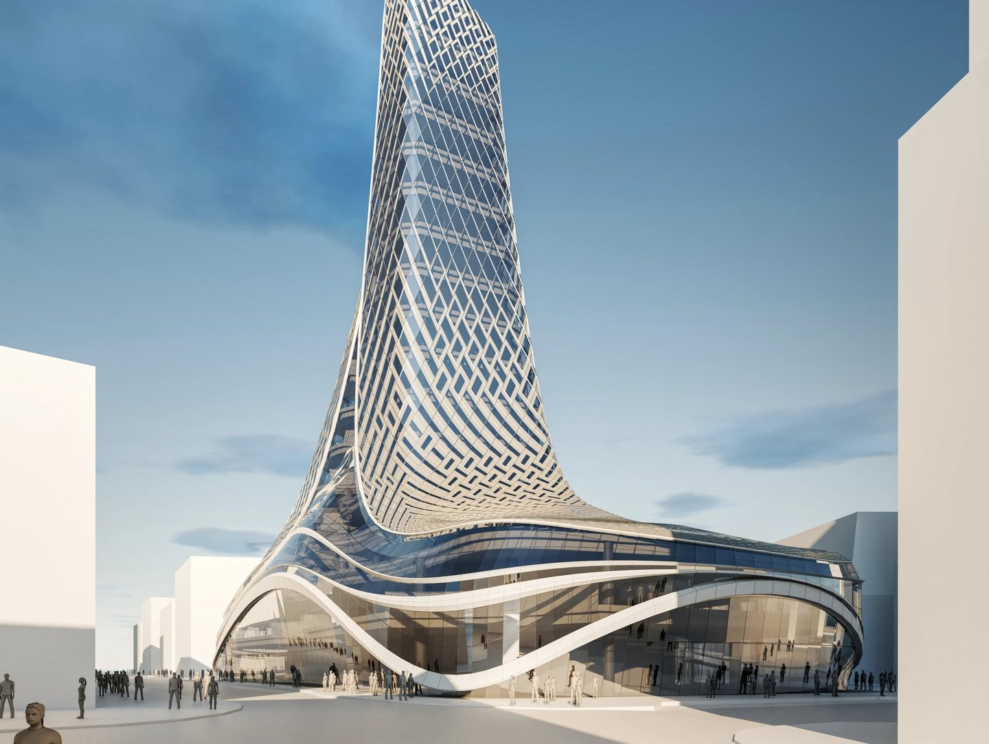 A parametrically driven symbiosis of a landscape form smoothly evolving into vertical form with attractor-based openings
